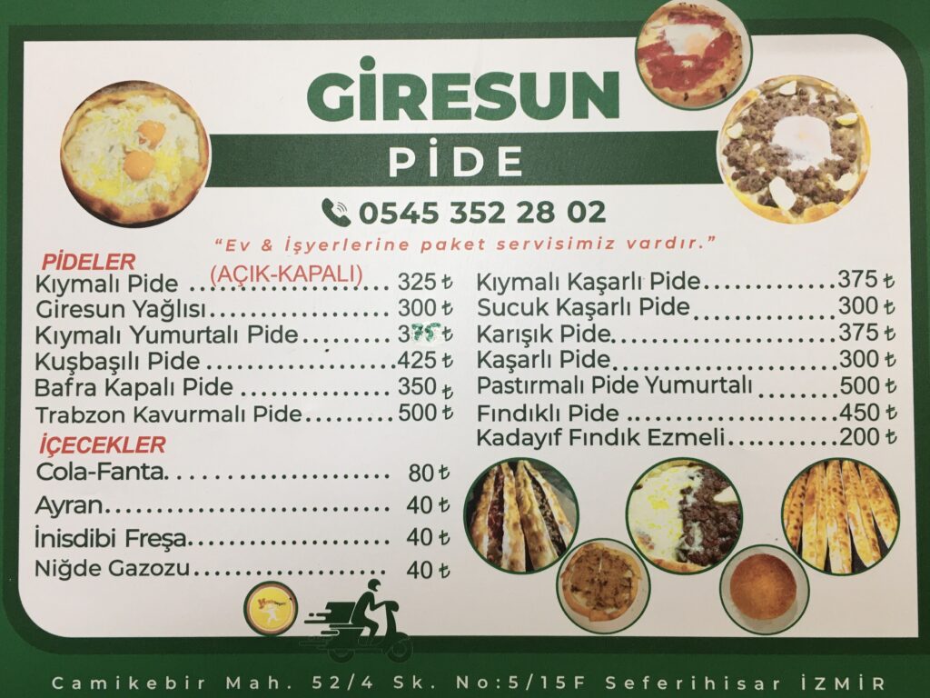 Seferihisar pide SEFERİHİSARGİRESUNPİDE de yenir.