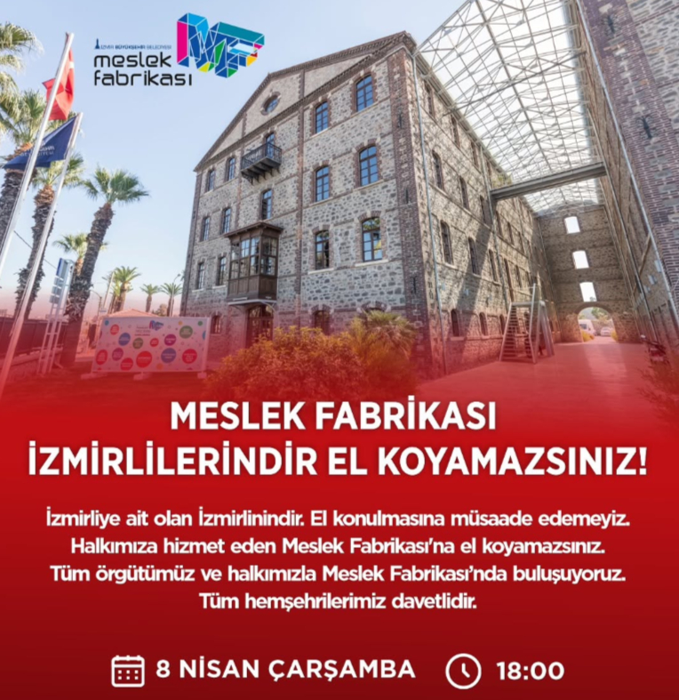 Dış kaynaklardan edinilen bilgilere göre, İzmir Büyükşehir Belediyesi Meslek Fabrikası, özellikle gençler ve kadınlar için 100’den fazla branşta ücretsiz teknik eğitim vererek sanayi ve hizmet sektörüne kalifiye eleman yetiştiren Türkiye’nin örnek projelerinden biri olarak biliniyor. Binanın Milli Emlak veya ilgili bakanlıklar vasıtasıyla yerel yönetimin elinden alınma çabası, sadece Seferihisar’da değil tüm İzmir genelinde büyük bir tepki dalgasına yol açmış durumda. Rahmi Tezel Çınar, bu girişimin yerel demokrasinin kazanımlarına darbe vurmak olduğunu belirterek, “Yarın saat 18.00’de Meslek Fabrikası önünde toplanıyor, hep birlikte bu işgal düzenine ‘dur’ diyoruz” dedi.